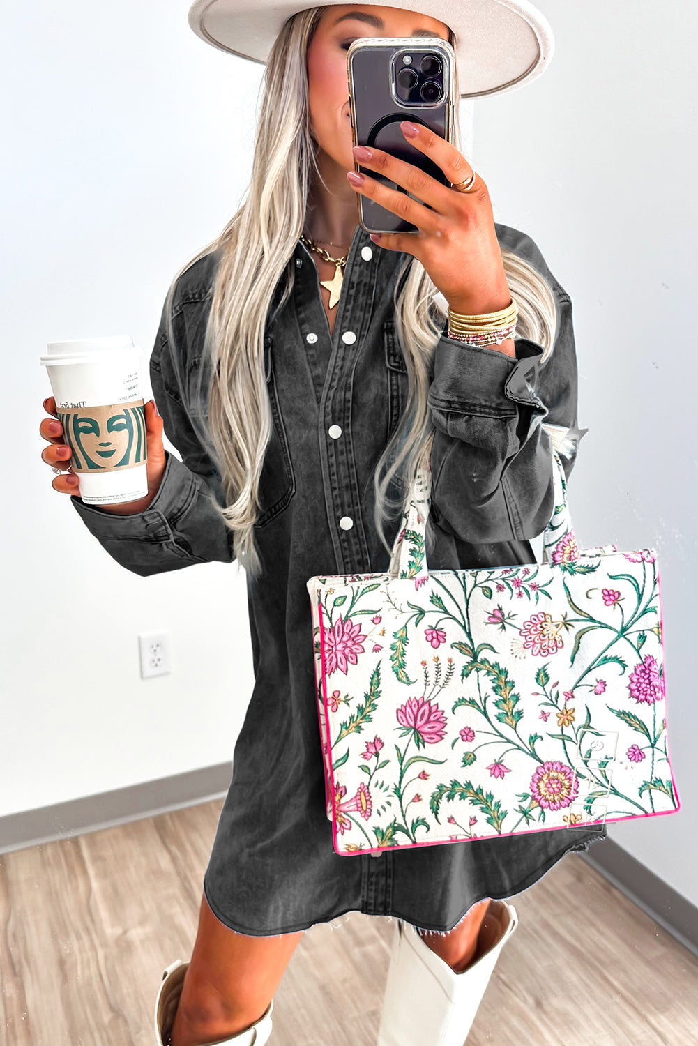 Beau Blue Chest Pocket Raw Hem Denim Loose Shirt Dress
