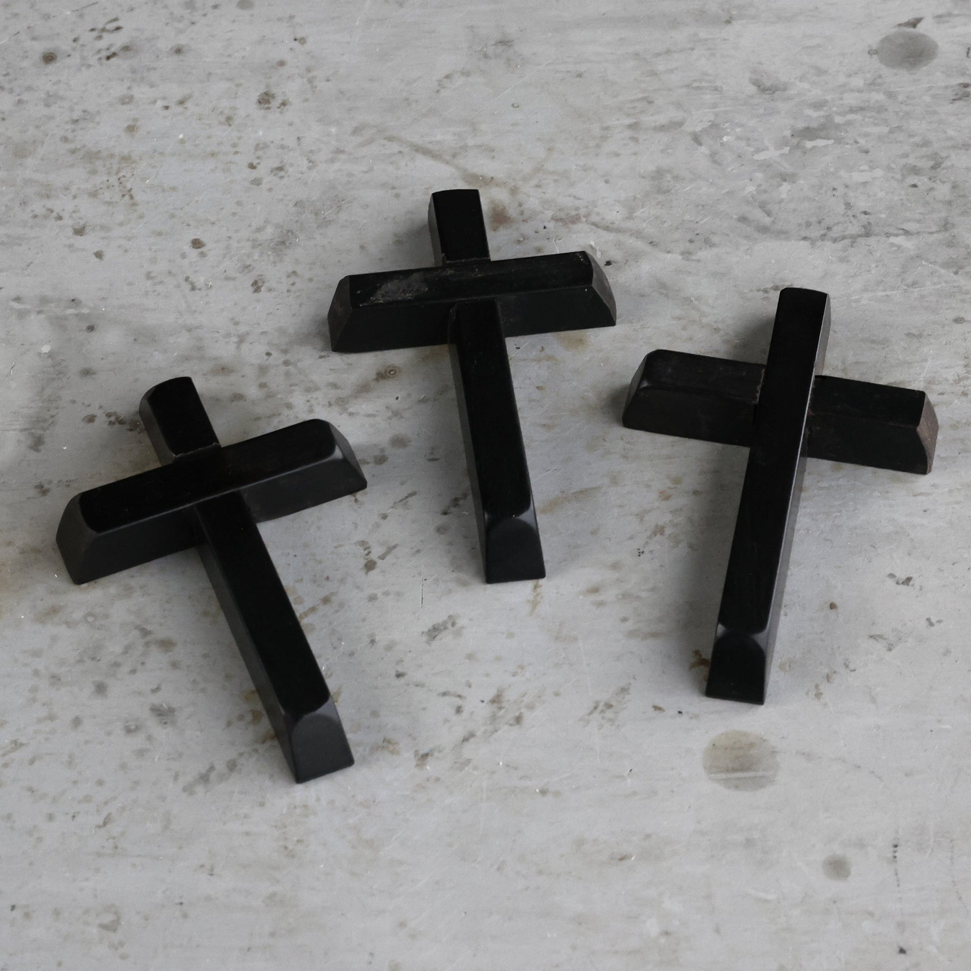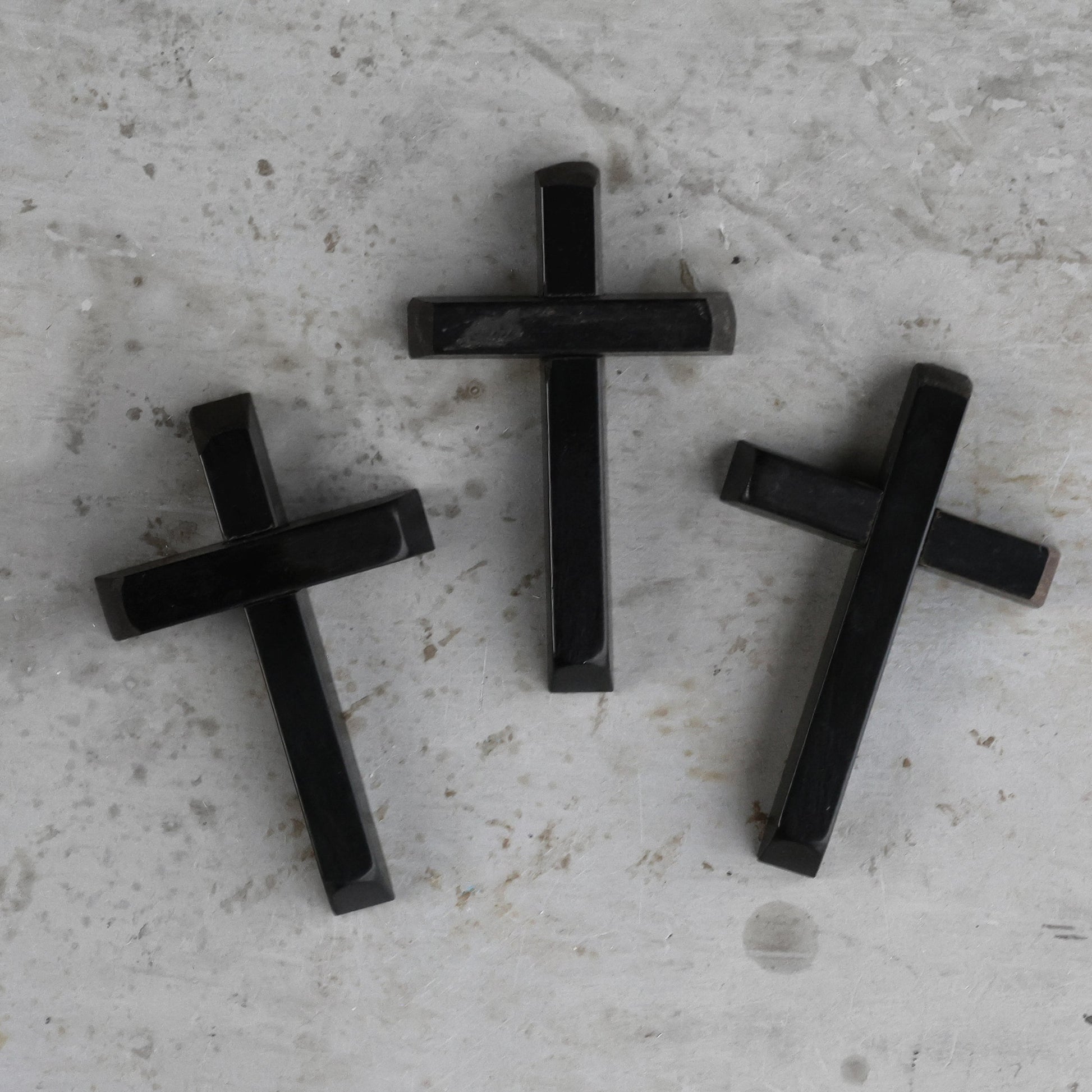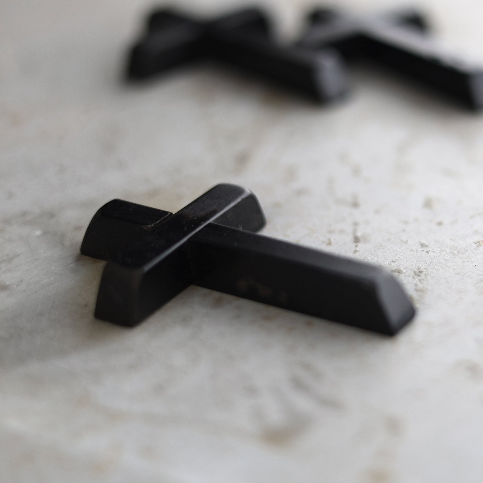 These crosses are made from the most precious pieces of our reclaimed wood—ebony piano keys! Each piano has only 36 ebony keys, and only the oldest and finest pianos are made with solid ebony. These crosses are all made with 100% solid ebony; this naturally black wood is beautiful and dense—perfect for an elegant and meaningful cross.Â