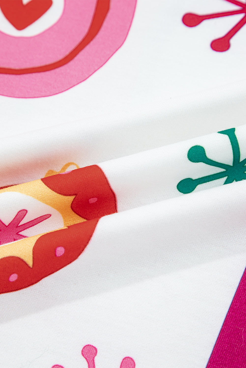 White Plus Size Christmas Ho Ho Ho Print Long Sleeve Top and Shorts Pajama Set